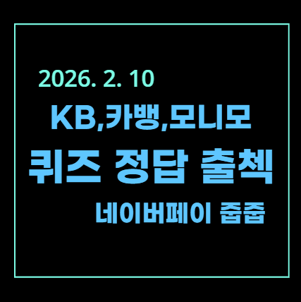 | [2026년 2월 6일] KB, 네이버 PAY 출석 퀴즈 (0) | 2026.02.06 |
